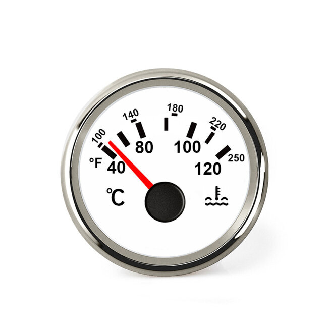Deze koelwatertemperatuurmeter is ontworpen om u een nauwkeurige meting te bieden van de temperatuur van het koelwater in uw bootmotor. Het stijlvolle witte ontwerp met roestvrijstalen afwerking zorgt niet alleen voor een moderne uitstraling, maar garandeert ook een lange levensduur, zelfs onder de meest veeleisende omstandigheden op het water.